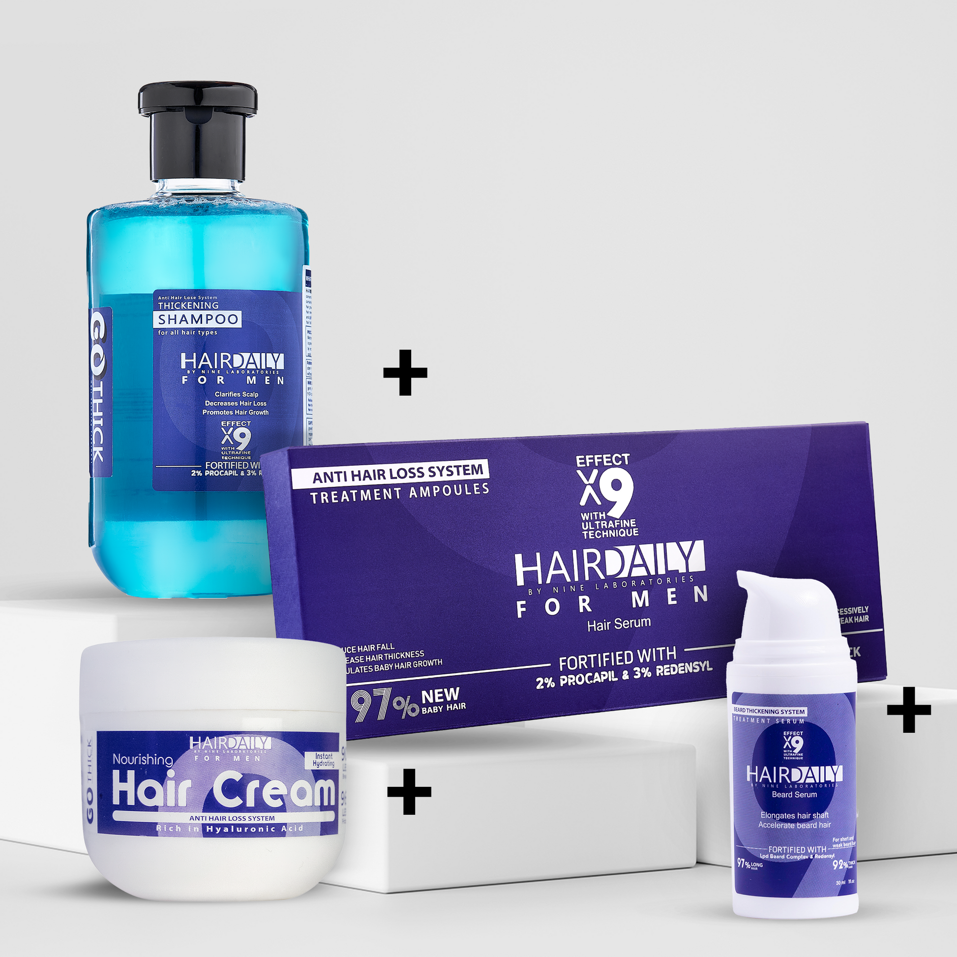 روتين علاجي يومي متكامل للرجال، بيجمع بين 4 منتجات طبية من Hair Daily لعلاج تساقط الشعر، تقوية البصيلات، إنبات الذقن، وترطيب الشعر من الجذور للأطراف.