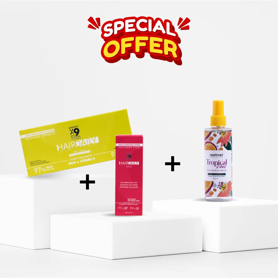 - تحتوي على 9 زيوت طبيعية مقوية لفروة الرأس ومغذية لبصيلات الشعر وتعمل على وقف تساقط الشعر الشديد في اسرع وقت.