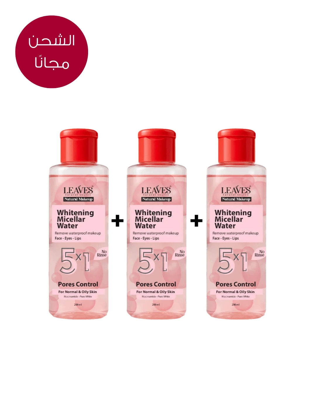 باكدج 3 عبوات ميسيلار ووتر من LEAVES للبشرة الدهنية لتنظيف بعمق وإزالة أصعب أنواع الميكاب المقاوم للمياه والزيوت الزائدة، تقلل اللمعان وتترك بشرتك صافية ومنتعشة